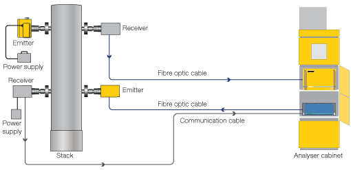 A single analyser can measure several types of gases along several light paths. It provides a very cost-effective monitoring system. The concentrations of all relevant types of gases can be monitored, for example HCl, SO2, NO, NH3, and Hg.